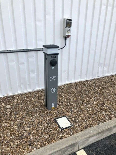 - Along with EV chargers, we supplied Bentley with a new 800amp supply for a new boiler room at their Crewe based headquarters. This included the new sub main cabling from a new high voltage transformer to a new GRP enclosure.